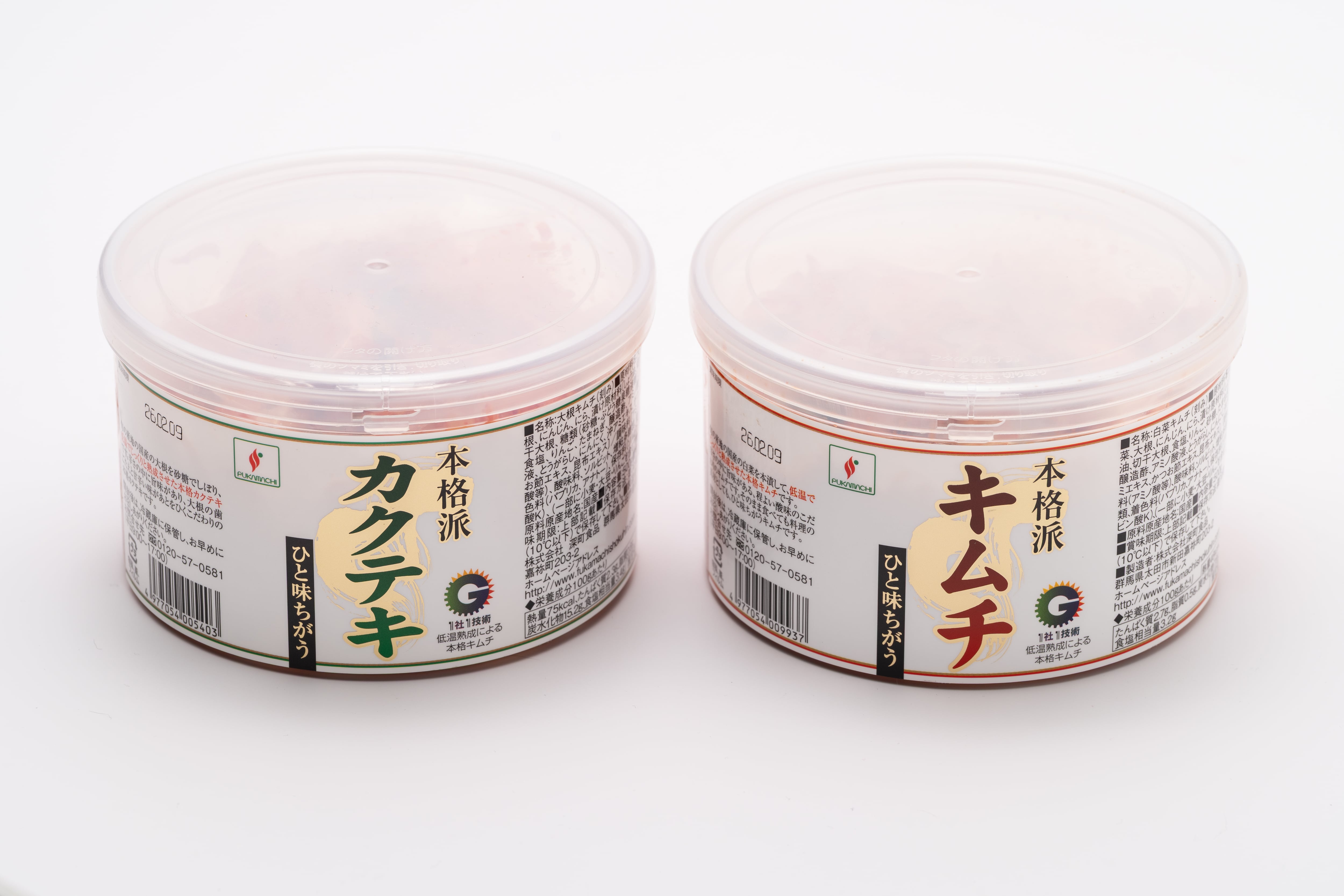 群馬県のからっ風で甘みを蓄えた白菜を低温でじっくりと熟成させた本格キムチ。辛さの中に旨味があり、大根の歯ごたえと甘辛い味があとをひくこだわりの本格カクテキ。